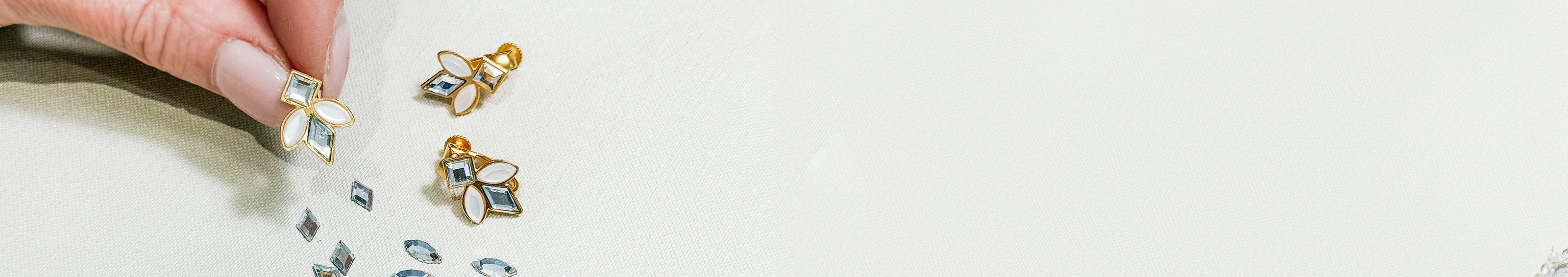 Our jewelry is designed and manufactured by hand. The base metal for our main line is brass, plated with high-quality, durable 14-24K gold or silver.
