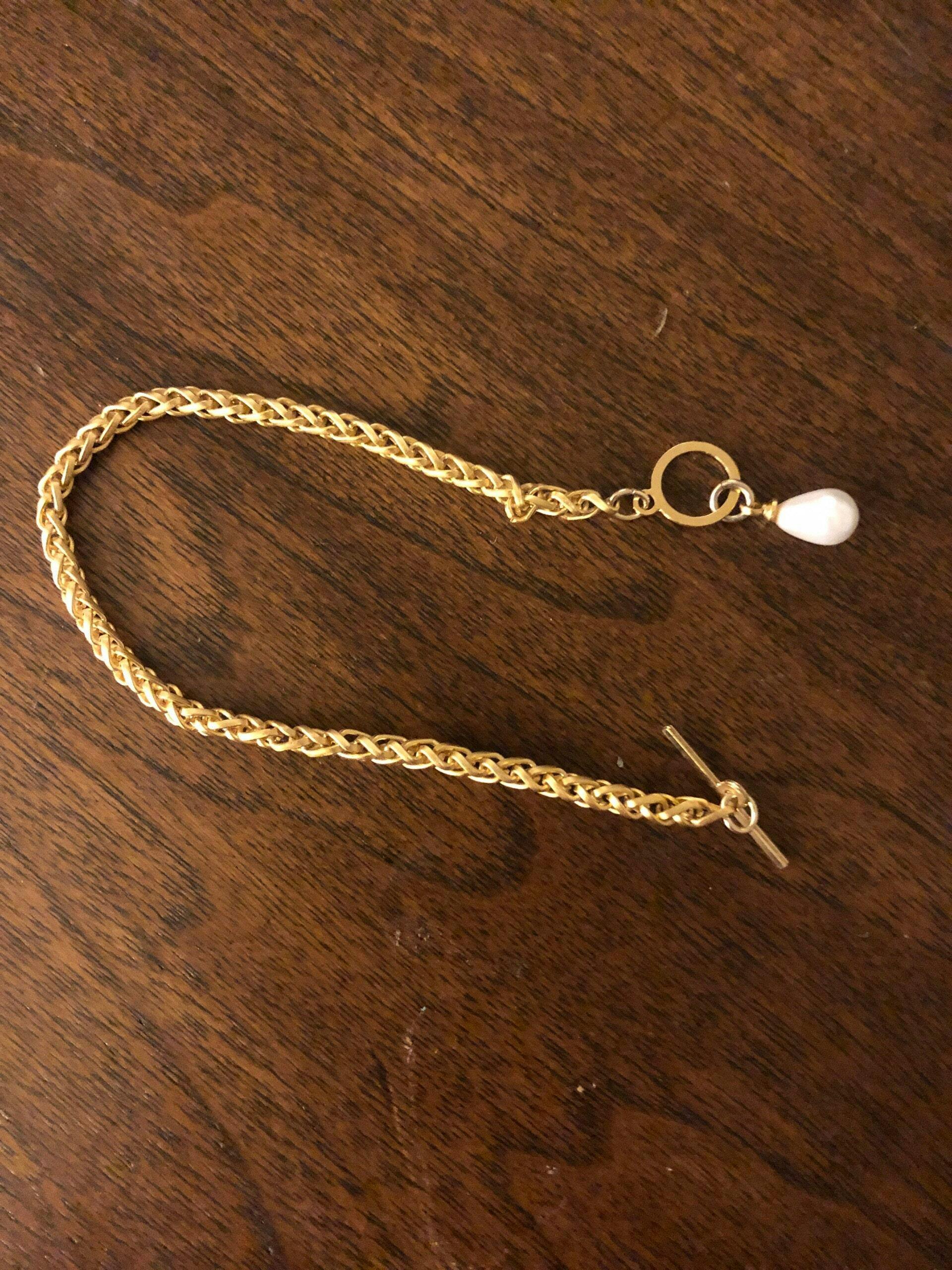 Caroline Bracelet - A Thick link bracelet with a unique toggle clasp, made of a link, and a rod, decorated with a glass pearl.