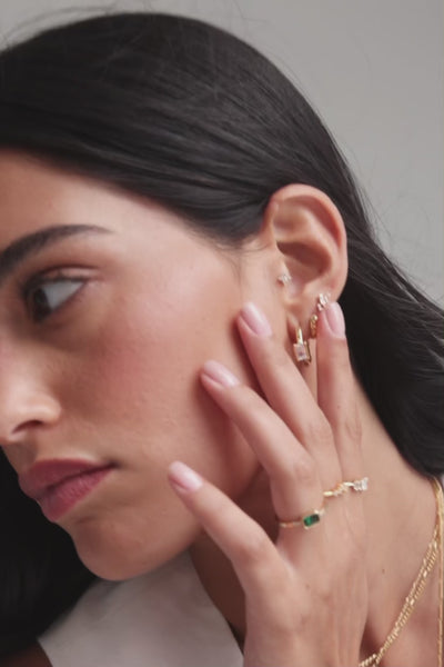 A fresh take on the classic hoop. Small and refined, with a faceted finish that adds texture and personality without losing that delicate feel.