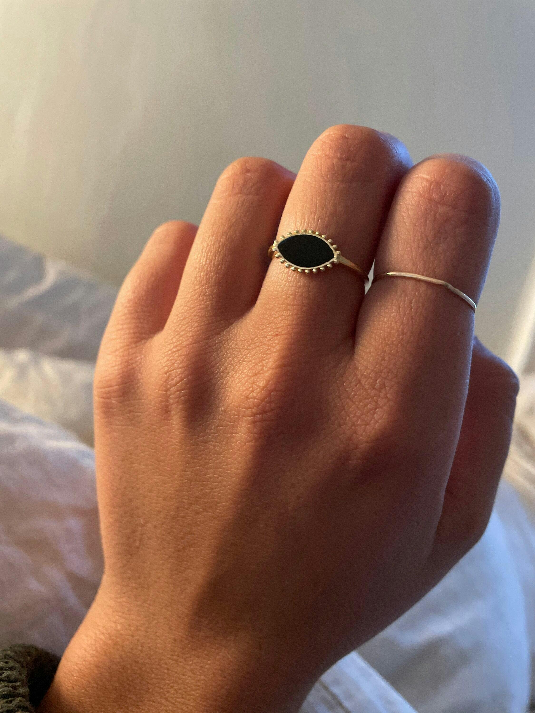 A Unique statement ring,centered with an eye-shape colorful Enamel element.